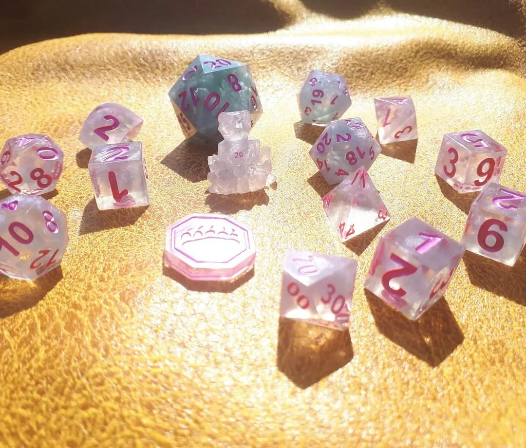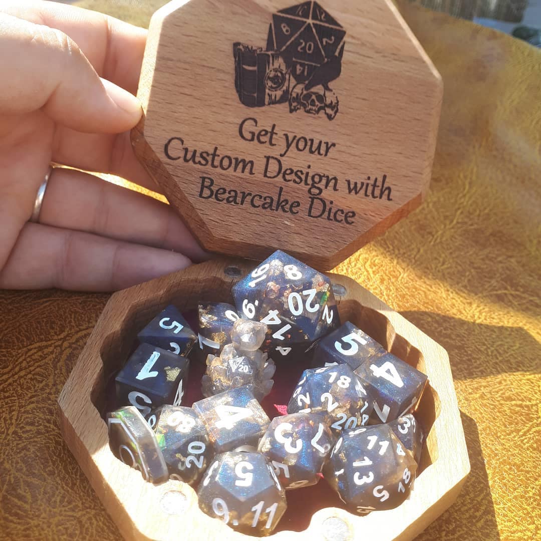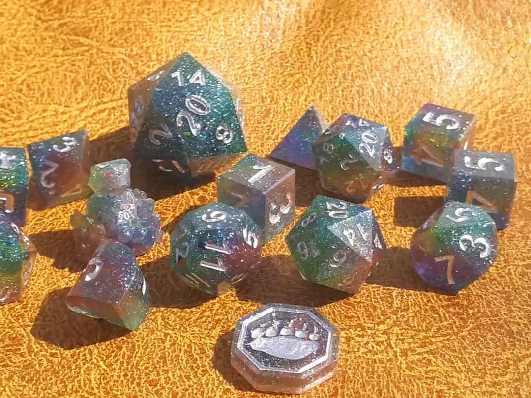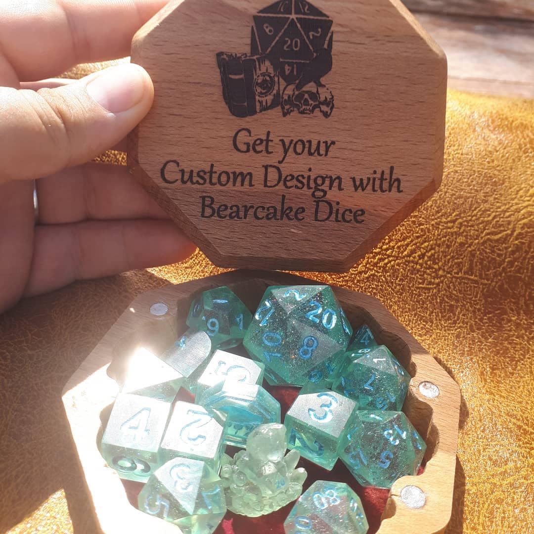 Ideal for RPG aficionados and collectors, our offerings include custom options like distinctive logos, vibrant colors, and enchanting effects, tailor-made for ttrpg projects and special events. Elevate your game with dice that blend timeless design with a modern, personalized touch, ensuring your set stands out on any gaming table.
