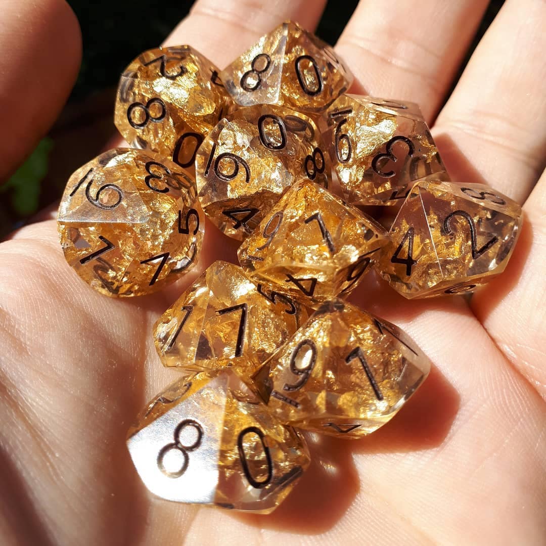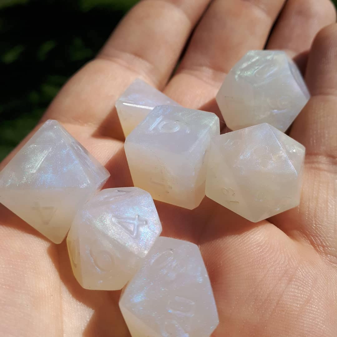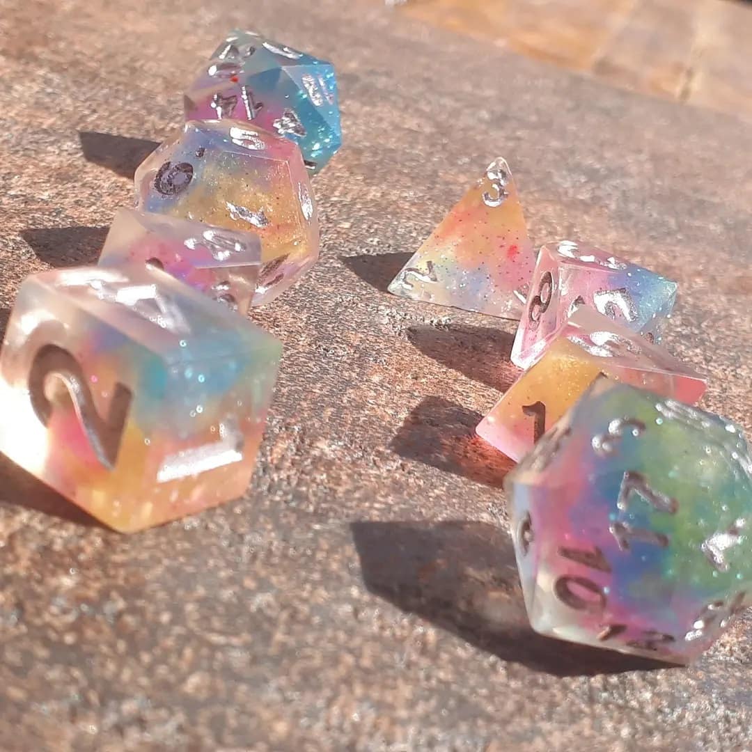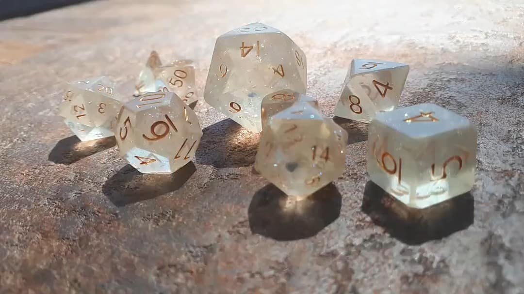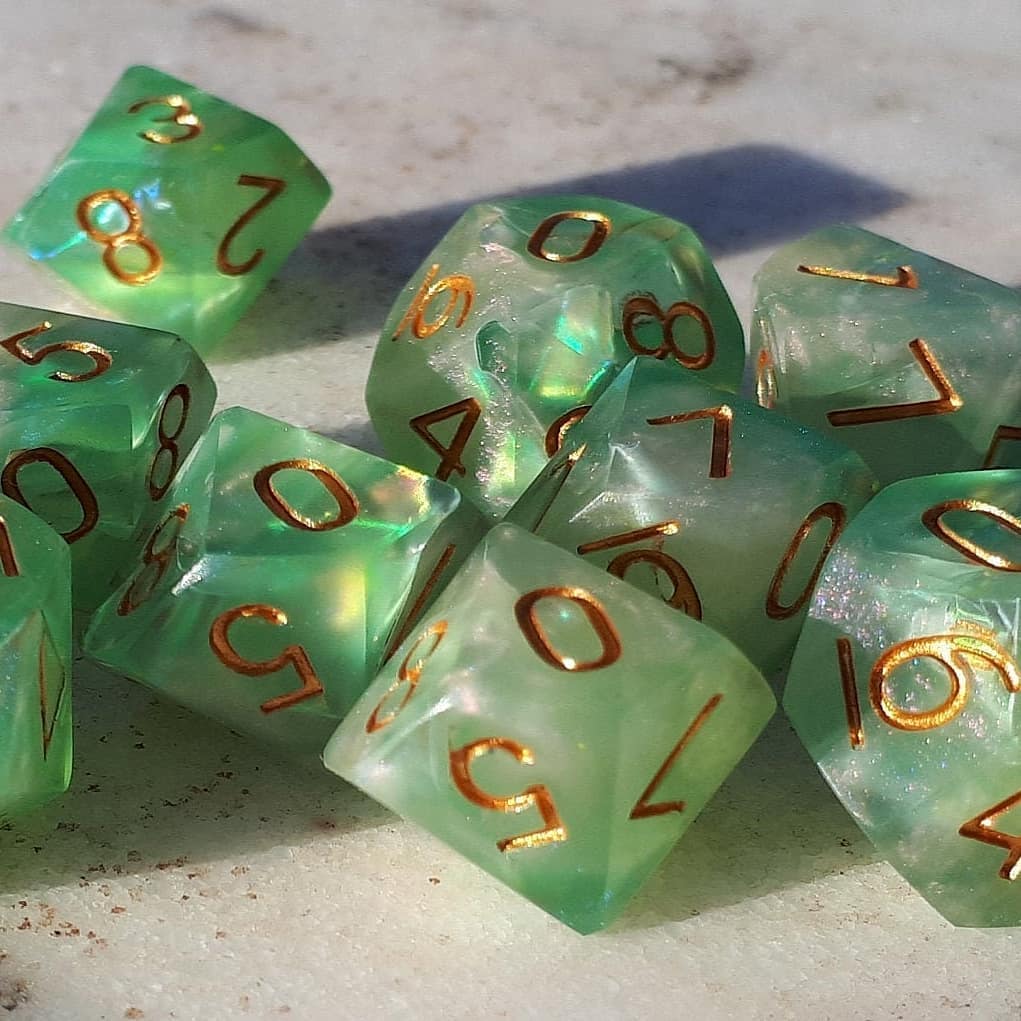 Ideal for RPG aficionados and collectors, our offerings include custom options like distinctive logos, vibrant colors, and enchanting effects, tailor-made for ttrpg projects and special events. Elevate your game with dice that blend timeless design with a modern, personalized touch, ensuring your set stands out on any gaming table.