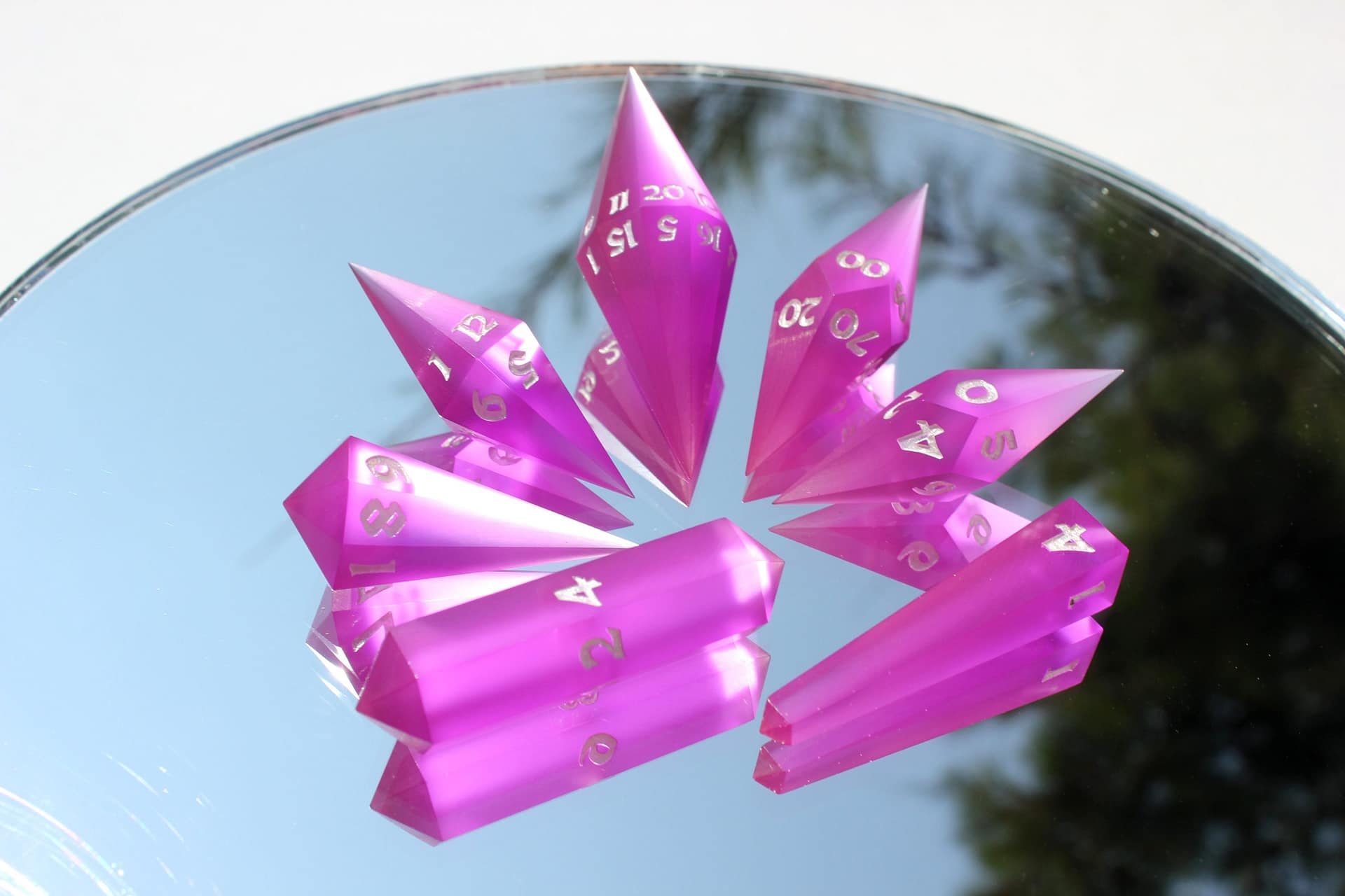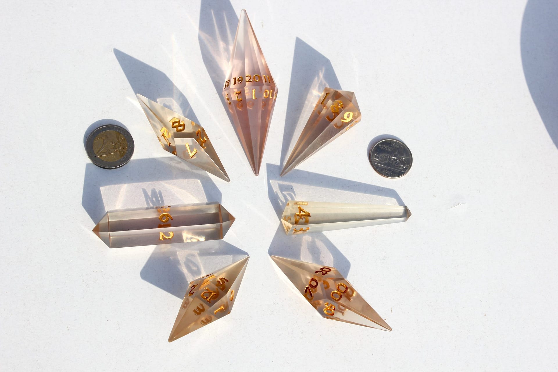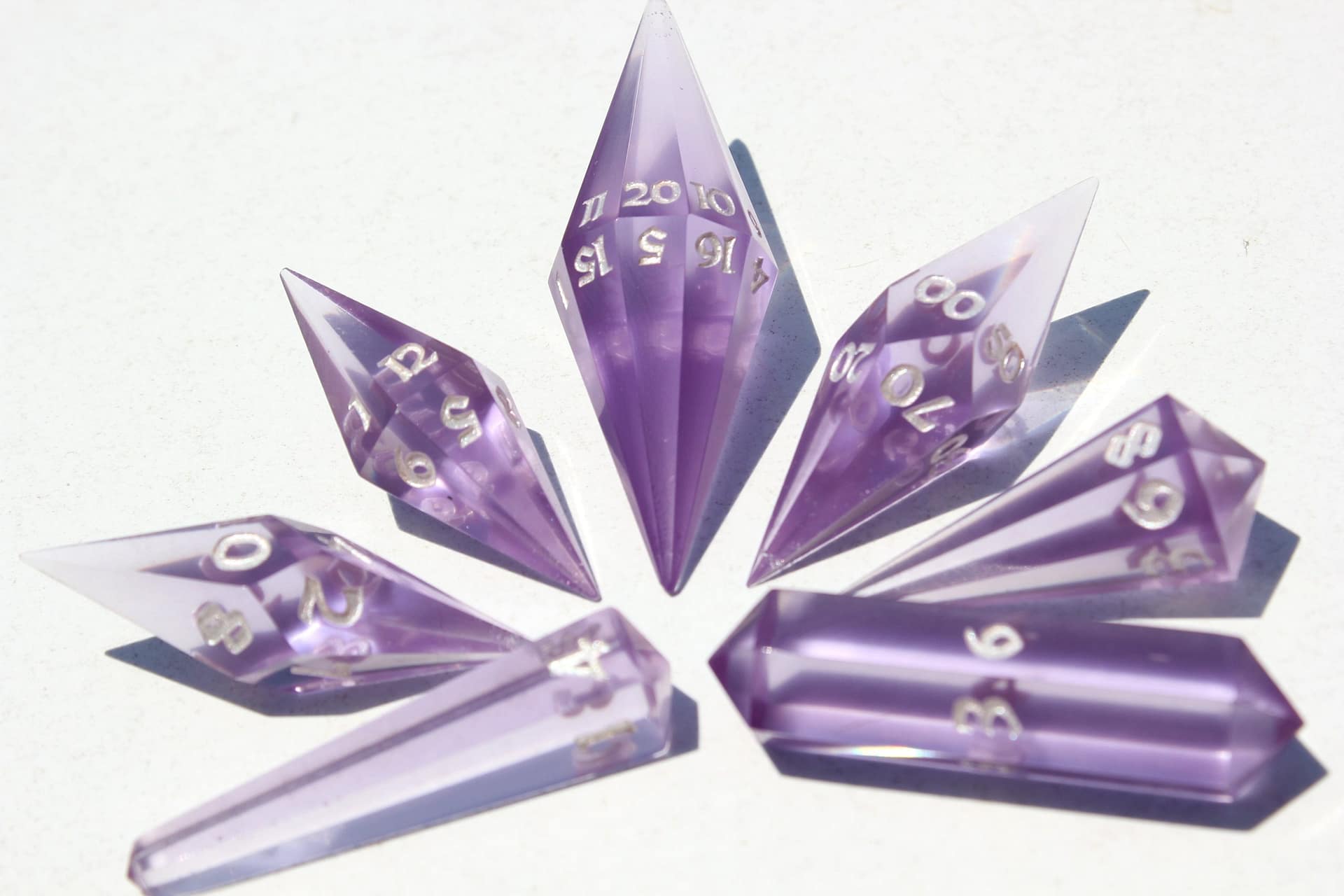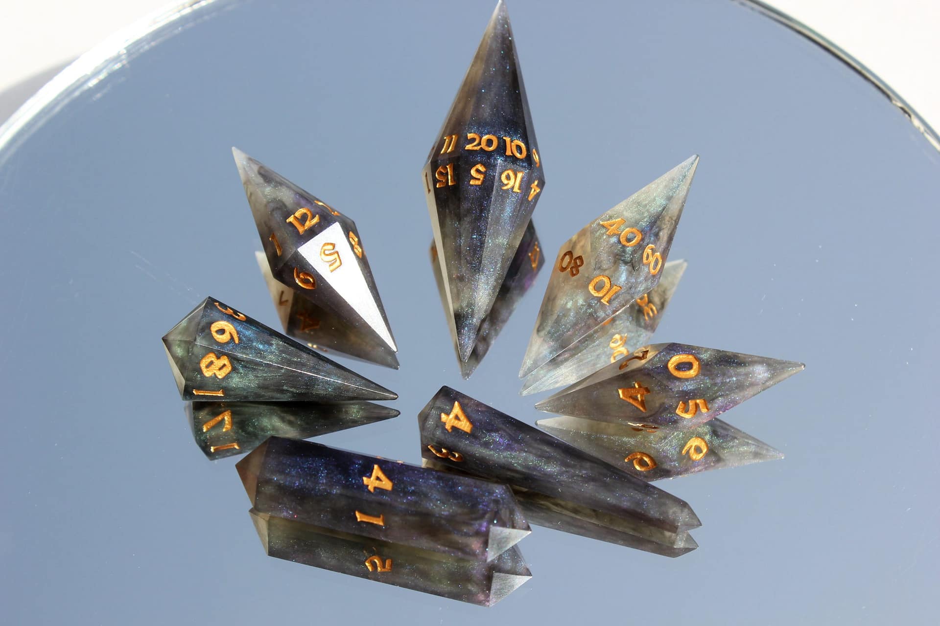 The distinct crystal shape not only captivates with its aesthetic appeal but also enchants with a unique sound that adds an extra layer of excitement to every roll. These dice are not mere gaming accessories; they are jewels of the tabletop, designed to be the focal point of any game.