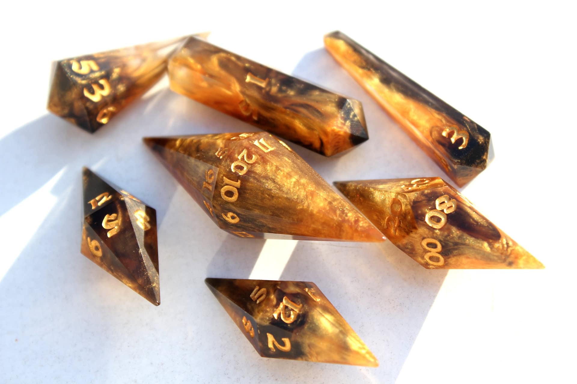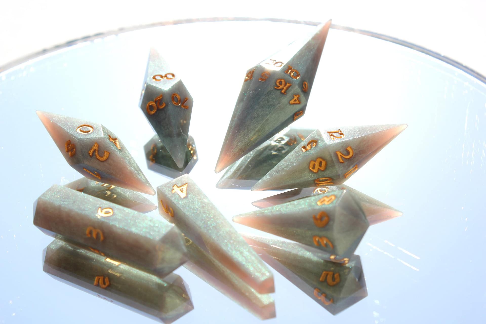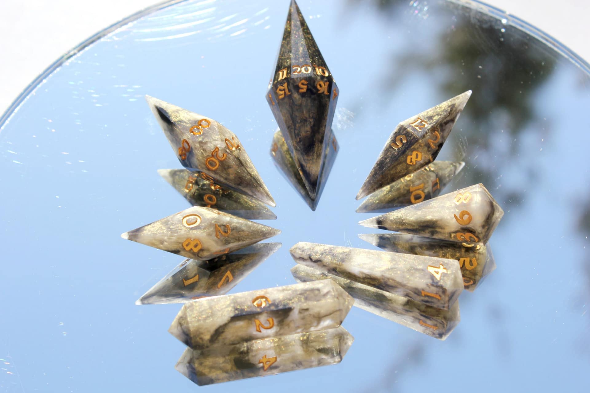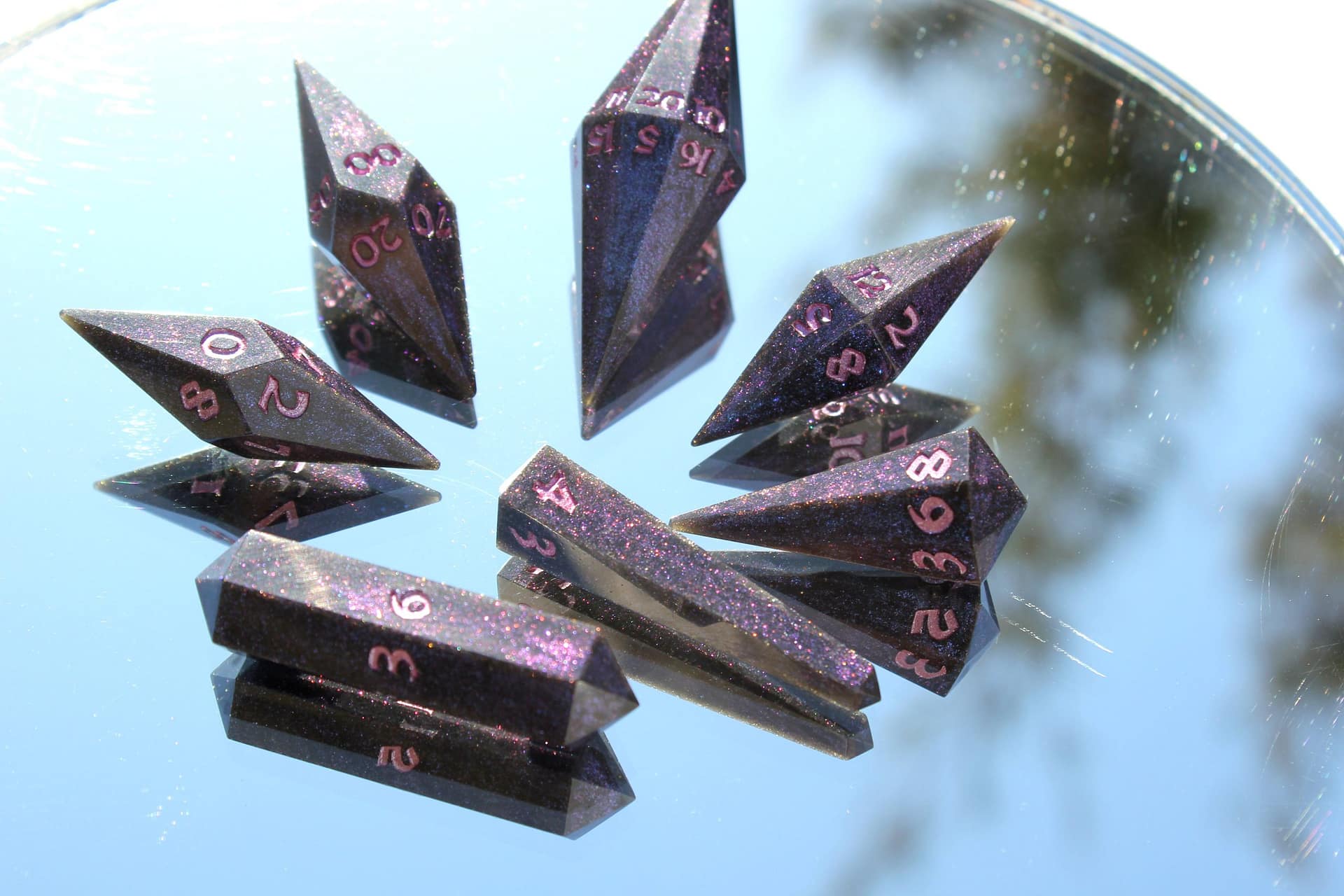 The distinct crystal shape not only captivates with its aesthetic appeal but also enchants with a unique sound that adds an extra layer of excitement to every roll. These dice are not mere gaming accessories; they are jewels of the tabletop, designed to be the focal point of any game.