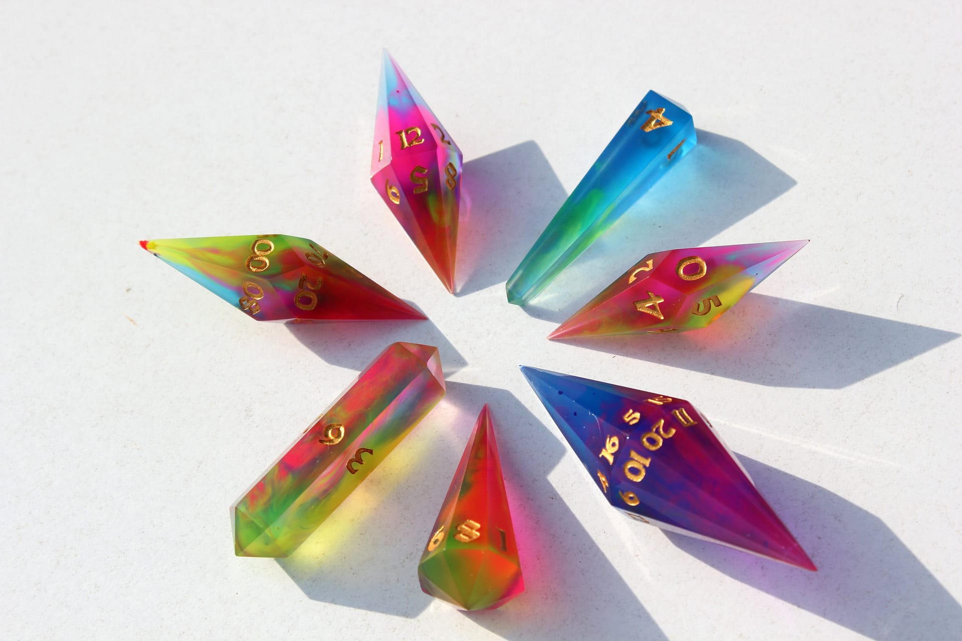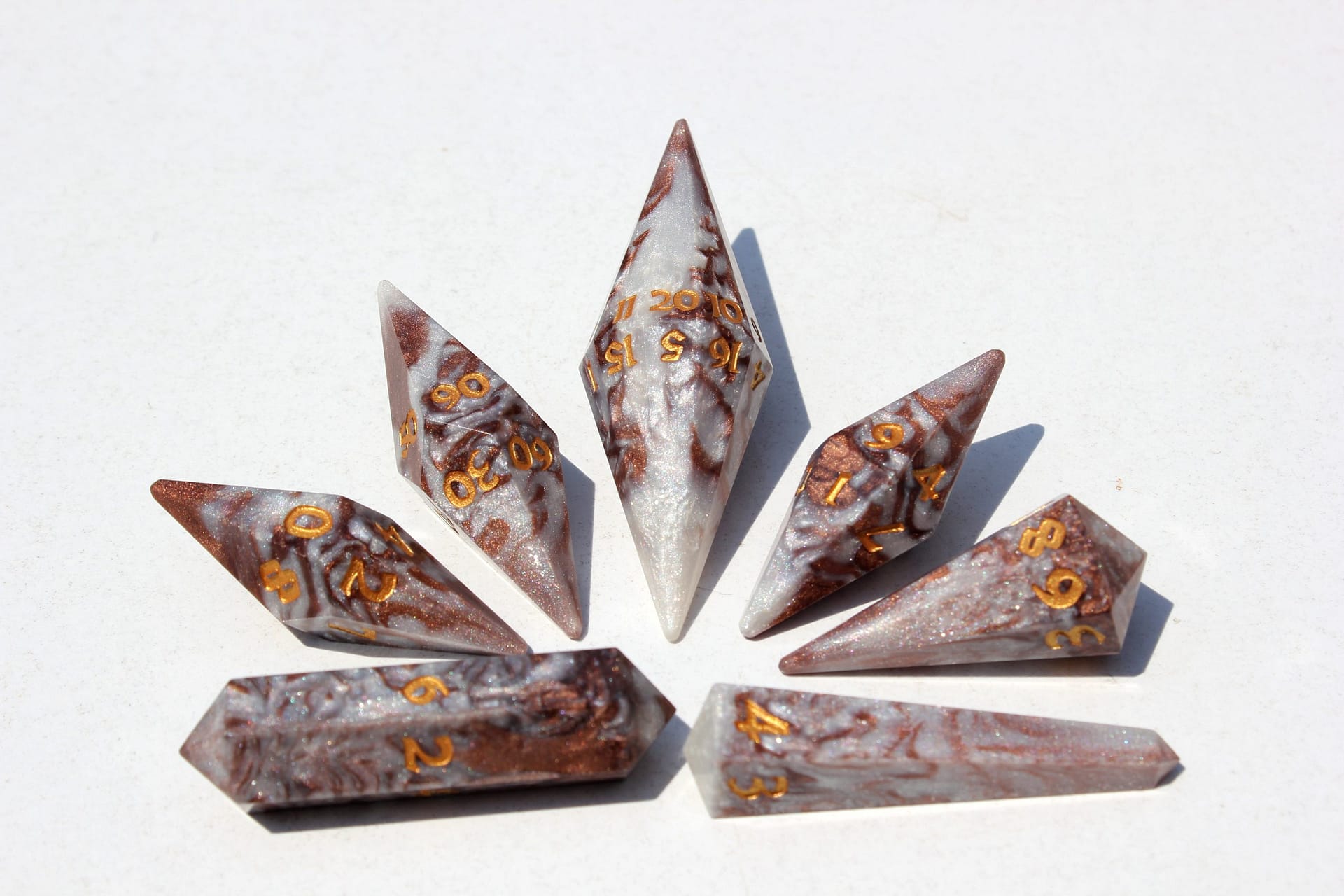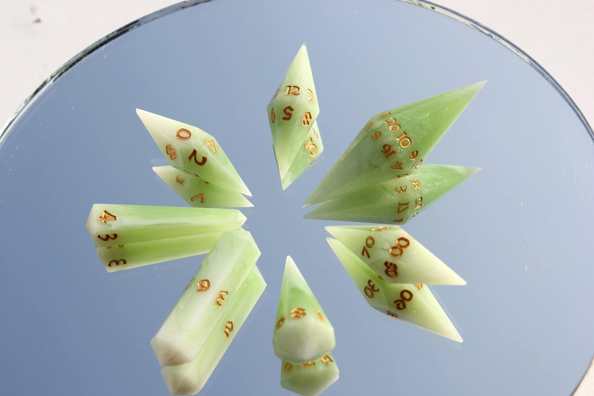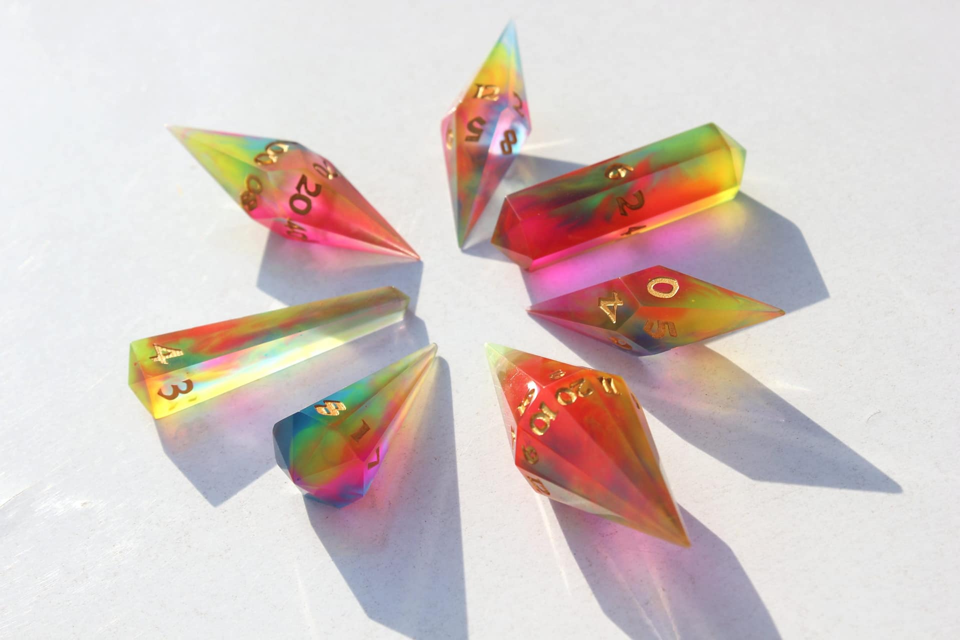The distinct crystal shape not only captivates with its aesthetic appeal but also enchants with a unique sound that adds an extra layer of excitement to every roll. These dice are not mere gaming accessories; they are jewels of the tabletop, designed to be the focal point of any game.