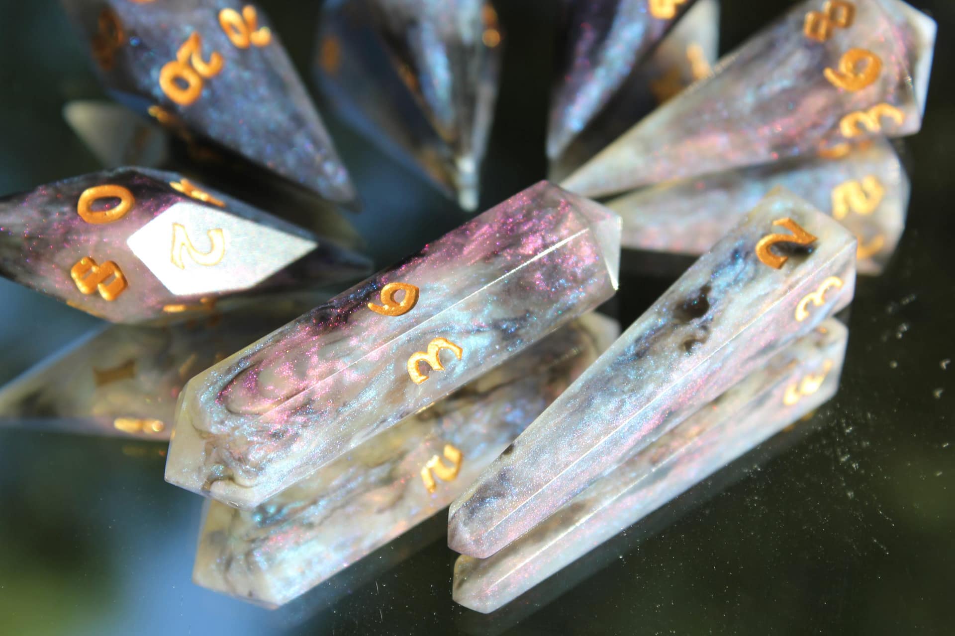 Step into a realm of unparalleled beauty with our Crystal DnD Dice. Each die is a masterpiece, meticulously crafted to showcase radiant pigments and an extraordinary design.